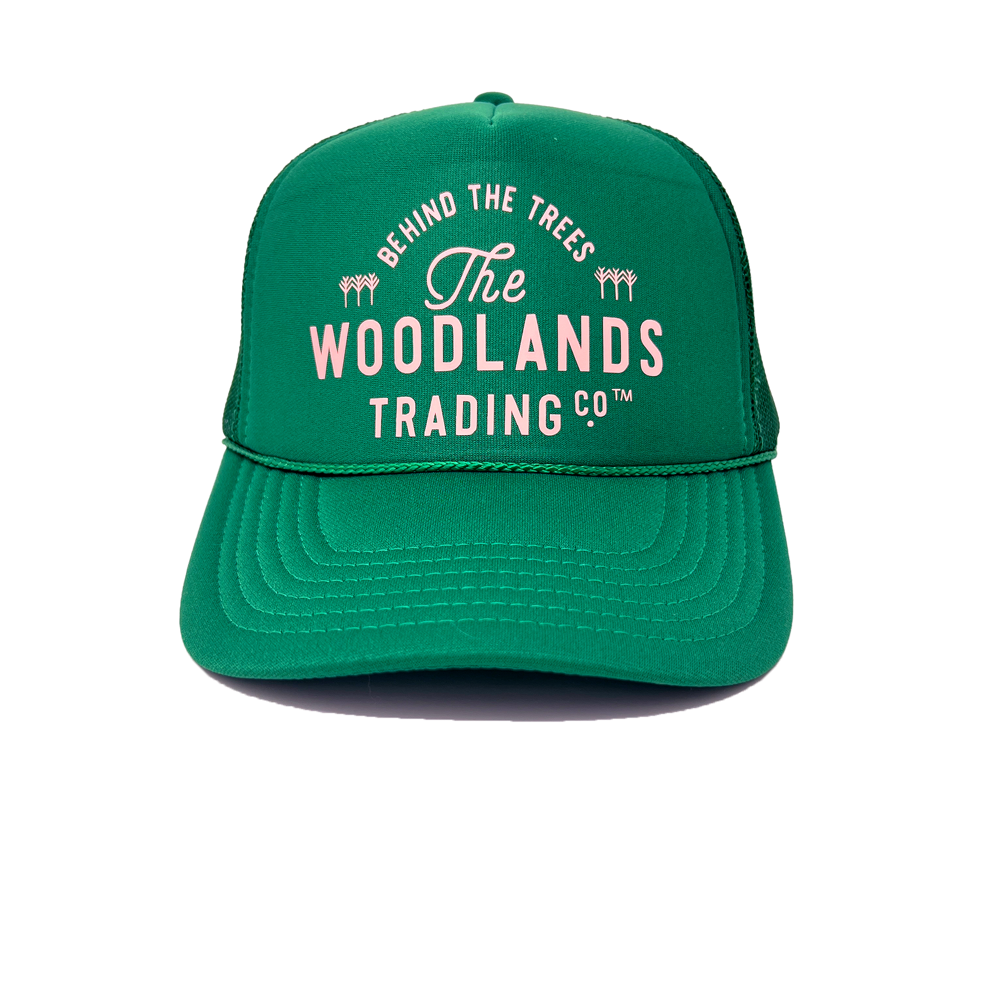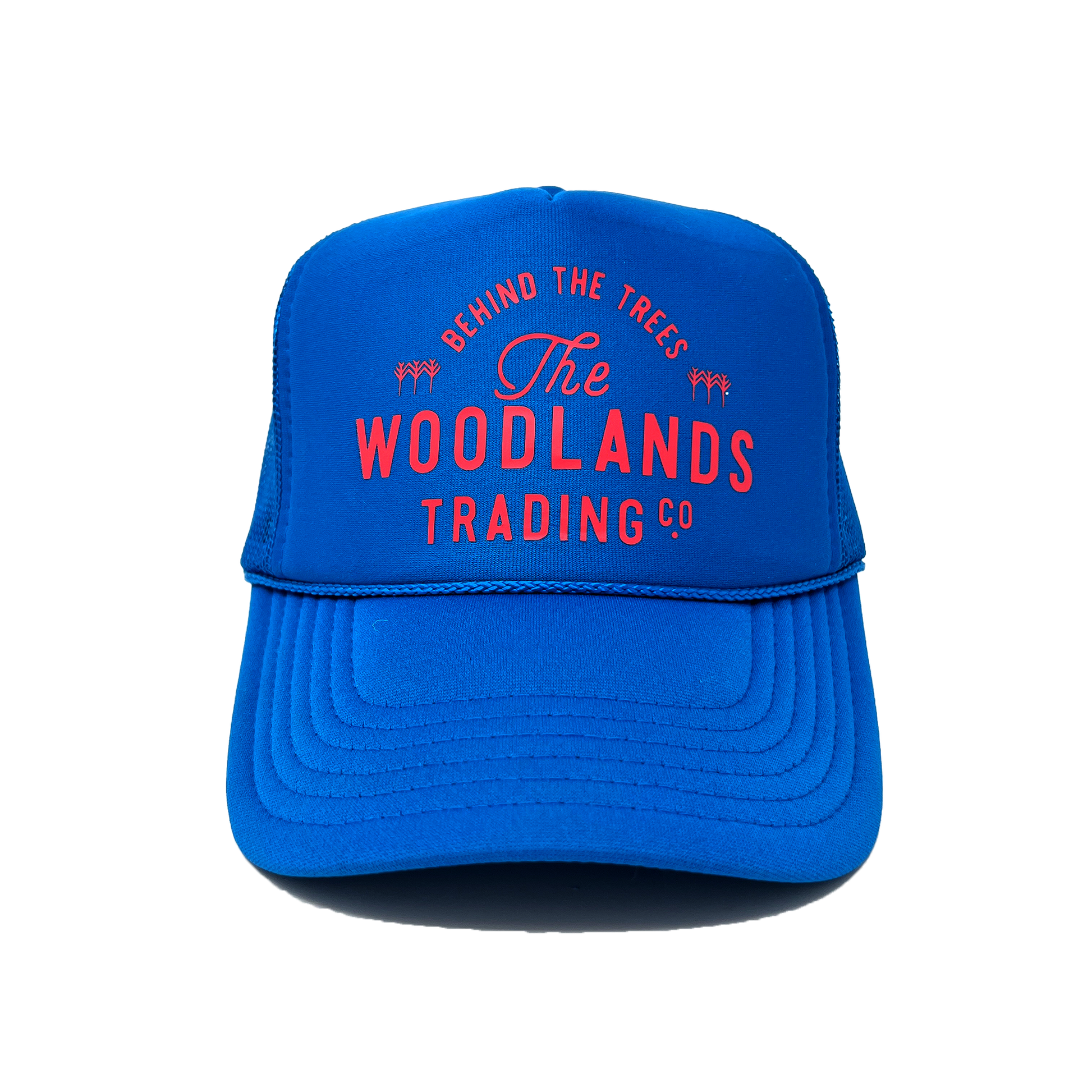 Super lightweight structured mesh foam Trucker Hat with custom original Graphics. Vintage Behind The Trees The Woodlands Trading Co. Graphics created in one of a kind limited edition retro color combinations.